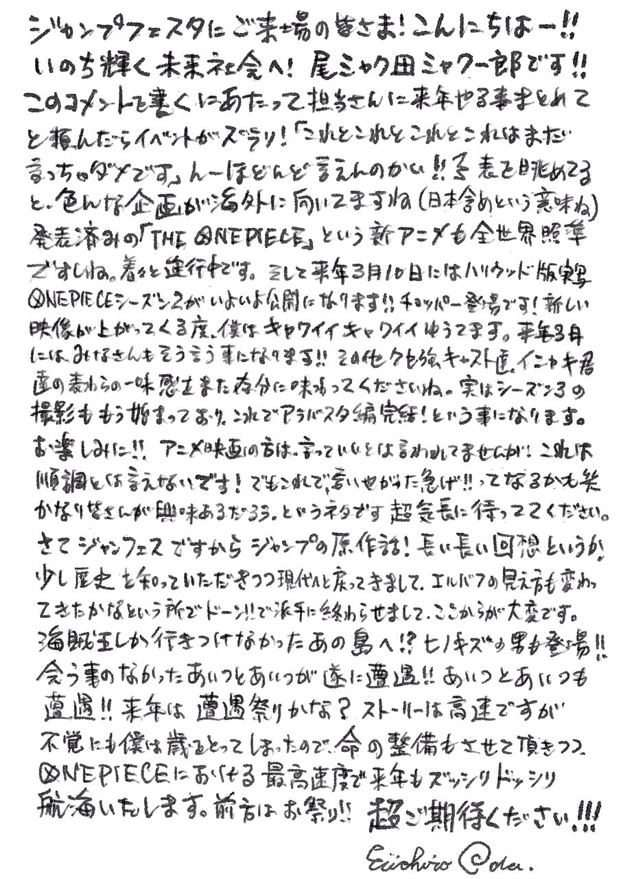 尾田っち直筆コメントを公開!『ONE PIECE』の航海を、