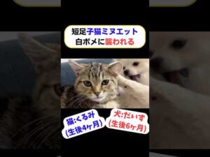 【衝撃】子猫が白ポメに襲われ…?! #子猫 #短足ミヌエット #ポメラニアン