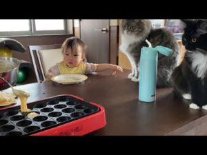 お疲れモードの猫とマイペースな子猫 【スコティッシュフォールド】