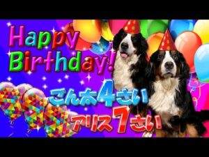【バーニーズマウンテンドッグ】元保護犬のアリスとごん太のバースデーパーティーでコングに大興奮【大型犬】