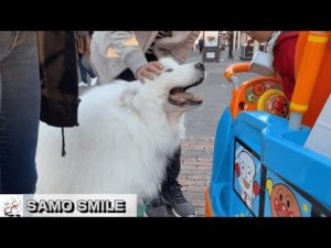 【じぃちゃんサモエド】真っ白モフモフ、シャンプーして アウトレットで散歩 / Shampooed Samoyed, walk through the outlet.