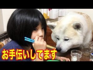 秋田犬のお手伝い!100点完食請負ます。 Help the dog