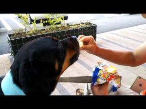 ロットワイラー クロールするパパと泳ぎたい Rottweiler