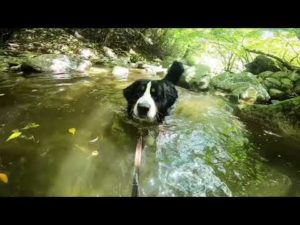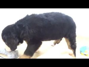 バーニーズマウンテンドッグ 犬の川遊び :Bernese Mountain Dog try to swim