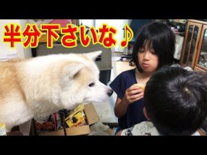 お土産は何?秋田犬そうすけ君、とりあえず何か頂戴♪dog treat