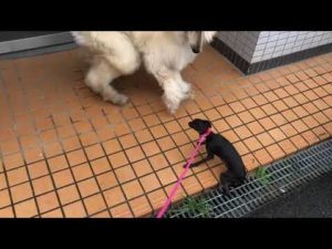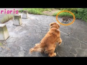 散歩中に猫と遭遇したゴールデンレトリバー[Golden Retriever][ShihTzu]