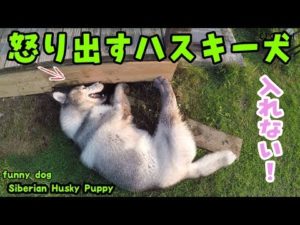 ウッドデッキの下に潜りこみたいハスキー犬が怒り出した Husky Puppy