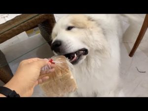 アラン食パンを持ち出す Great Pyrenees グレートピレニーズ