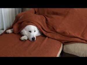 掃除の邪魔をするルンルンと掃除後すぐに荒らすアラン Great Pyrenees グレートピレニーズ