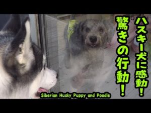 驚きの行動!ハスキー犬は、こんなにも優しくて頼もしいのか?Husky and Poodle