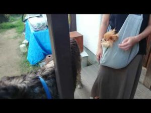 世界一大きい犬(アイリッシュウルフハウンド)と小さなココ(ポメラニアン)