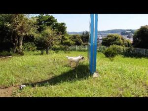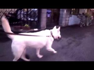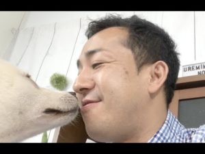 紀州犬、オス、白毛、4歳誕生記念の動画撮影。藤沢市の高台のホテルにて。