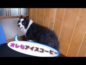 ボーダーコリー大好きな人来たのに3畳に締め出されいじける図「オレにもアイスコーヒー」「君はダメ!」