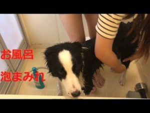 ボーダーコリーとお風呂 逃げて家泡だらけになるので扉は閉めましょう
