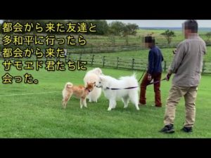 都会からきたサモエドにじゃれつく柴犬(多和平 焼き肉)🚘🐕🥩Observatory