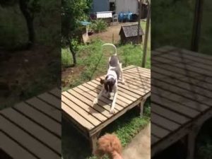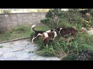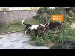 茶色いボーダーコリーの親子のお遊びタイム。大人げない母犬キニーちゃん。