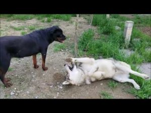 狼犬とロットワイラーのバトルは迫力満点!勝敗の結果はあっさり 【犬】