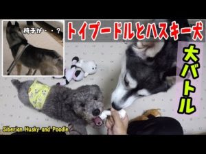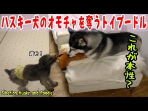ハスキー犬のおもちゃを強引に奪うプードル これが本性?!Husky and Poodle