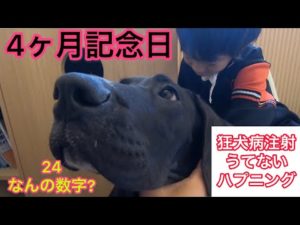 4ヶ月記念日に狂犬病注射💉しかし 打てない 超大型犬 グレートデン ニューファンドランド 渡辺ボス