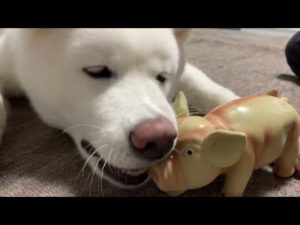 【秋田犬もんたろう #122】「リアルなぶたのおもちゃ」Akita inu