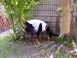3才5ヶ月9日ドーベルマン☆「外耳炎」治療中②受診の翌日のお庭にて☆