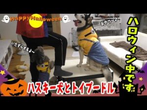 ハロウィンパーティするハスキー犬とプードルがかわいい Husky and Poodle