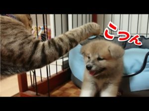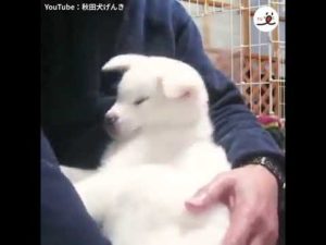 膝の上から降ろされ、不満気な秋田犬の子犬 この後、胸キュン行動に…【 PECO TV】