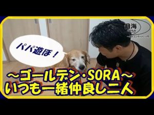 大型犬と暮らす。かわいい大型犬 ゴールデンレトリバー いつでも一緒に居ます!仲良しの二人。 Golden Retriever