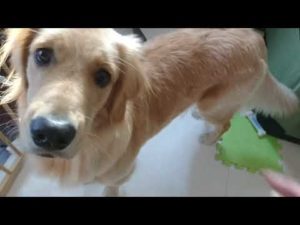 ゴールデンレトリバーのムック♀が夕食後に家を食べ始めました。