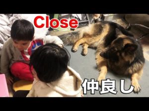 大型犬・シェパードマック・孫達と仲良くのんびり過ごす時間・Happy families