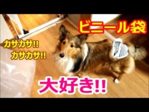 カサカサに大興奮!!のシェルティ☆ ビニール袋で遊ぶおもしろシェルティ