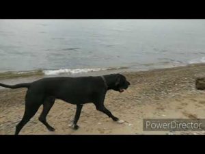 琵琶湖で遊ぶグレートデン、カリーとミニチュアピンシャー、チィ Great Dane Miniature Pinch