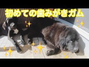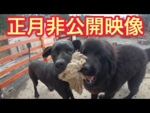 超大型犬とお庭ラン🇯🇵❤正月の非公開映像👸🤴🏻 ニューファンドランドボス君 グレートデーンクィーンちゃん newfoundlanddog Great Danedog Giantdog
