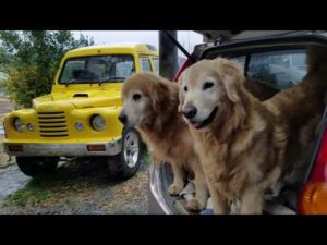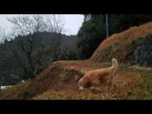 曇り空でも明るく聞ける輪唱の時報音楽をゴールデンレトリバーと