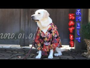 ラブラドールレトリバーどん流。あけましておめでとうございます。20200101★犬服手作り着物で新年のご挨拶 Labrador Retriever DON Happy New Year! 2020