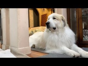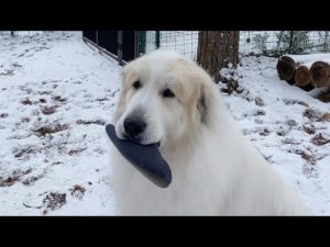 早速穴を掘るルンルンと何度もスリッパを持ち出すアラン Great Pyrenees グレートピレニーズ