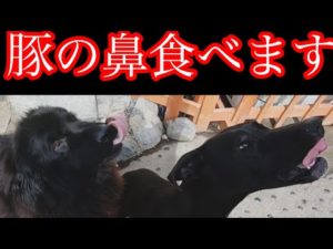 豚の鼻食べます🐽🍴 超大型犬 ニューファンドランド グレートデーン Newfoundlanddog Great Danedog BOSS&Queen 愛犬 おやつ Giantdog 渡辺ボス