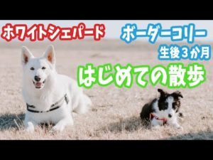 ついに外界に降り立ち歓喜するボーダーコリーとホワイトシェパードのはじめての散歩