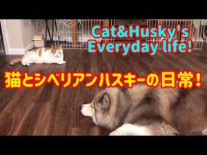 猫とシベリアンハスキーの日常 Cat and Siberian Husky's everyday life! 猫 Cat 茶白猫 シベリアンハスキー Siberian Husky