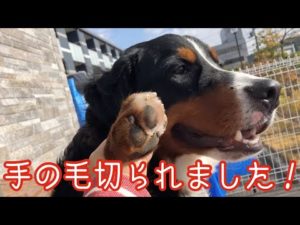 【大型犬の日常】足の毛のカットを嫌がるバーニーズマウンテンドッグ bernese mountain dog