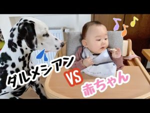 ダルメシアンVS赤ちゃん 盗み食いされずに食べることができるのか・・#ダルメシアン#大型犬と赤ちゃん#ダルメシアンと赤ちゃん