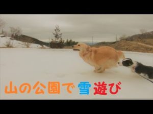 山の公園で雪遊び【ボーダーコリー】と【ゴールデンレトリバー】