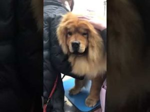 動物病院の診察台でビビリまくるチャウチャウ犬 必死に耐える犬
