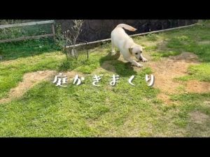 庭かぎまくり。ラブラドール・レトリーバー Labrador Retriever sniffing in the garden
