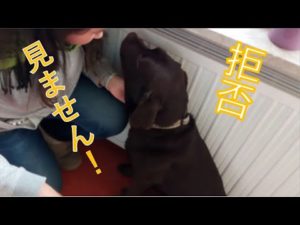 “掃除機だよ!!”全身で拒否する様子がカワイイ!ラブラドールレトリバー「ロビン」