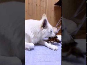 2020/04/20 仲良く遊ぶホワイトスイスシェパードとパピヨン
