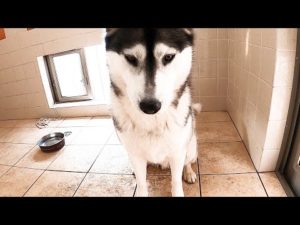 「早くご飯をくれ〜」と全力で飼い主に訴えかけるシベリアンハスキー2匹