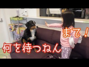 【犬と子供の日常】不用品で遊ぶ バーニーズマウンテンドッグ bernese mountain dog and Japanese family