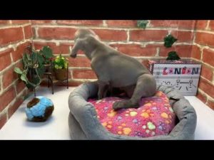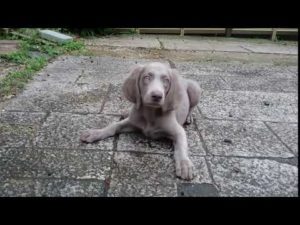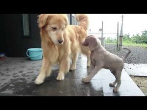 【ワイマラナーとゴールデン】ちびワイマ、初めて雨の日に外に出る