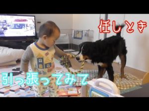 【犬と子供の日常】朝から軽く子供と遊ぶ バーニーズマウンテンドッグ bernese mountain dog playing with child from morning